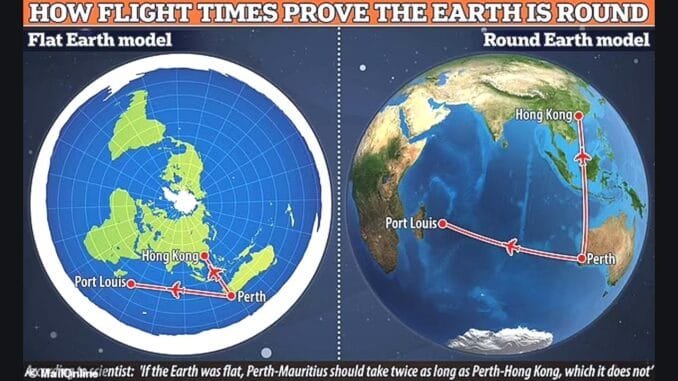 Modelin bulgularına göre, Avustralya’nın Perth şehrinden kuzeye doğru yapılan yedi saatlik bir uçuş, Hong Kong’a ulaşırken, aynı süre boyunca batıya doğru yapılacak bir uçuş ise Mauritius’a varıyor. Eğer Dünya düz olsaydı, batıya doğru yedi saatlik bu uçuş, sizi Mauritius’a giden yolun sadece yarısına götürebilirdi.